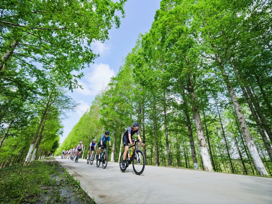 本次赛事推出的55公里“南上海最美赛道”,是南上海首次打造的海岸线与丛林结合体验赛道,其中25公里穿行于水杉林等丛林路段,30公里沿海岸线延伸,途经渔人码头、碧海金沙等特色景区,全程无明显爬升,既适合专业选手竞技,也满足大众休闲骑游需求。经过多次实地勘测与风险排查,赛道在保障安全的同时,最大化呈现了奉贤海湾的生态与人文魅力,成为赛事的一大亮点。