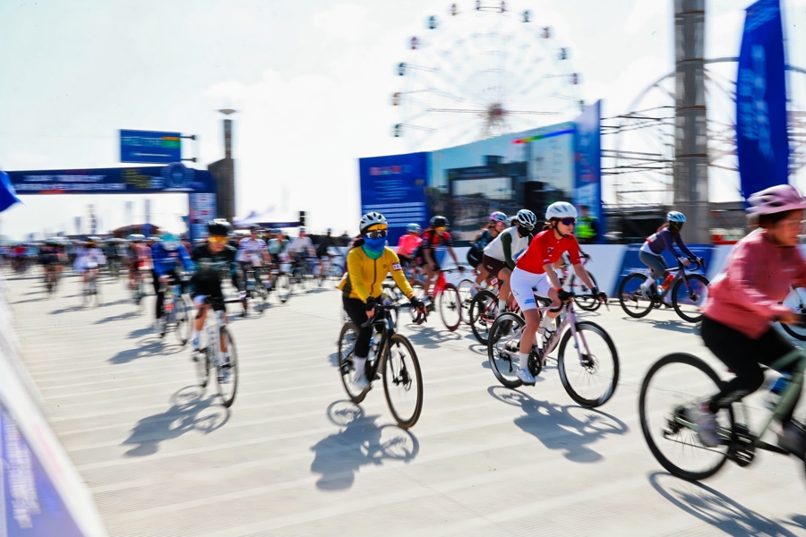 以赛事为核心,奉贤海湾联动文化、旅游、商业、展览等多元业态,在现场设置了赛事赞助商展位、高校体育成果展、奉贤文旅展示区、骑行装备体验区,推出赛事专属旅游券,让参赛选手与观赛市民在参与赛事的同时,能够深度体验海湾的旅游资源与特色文化,实现“体育引流、文旅变现、商业赋能”的良性循环。
